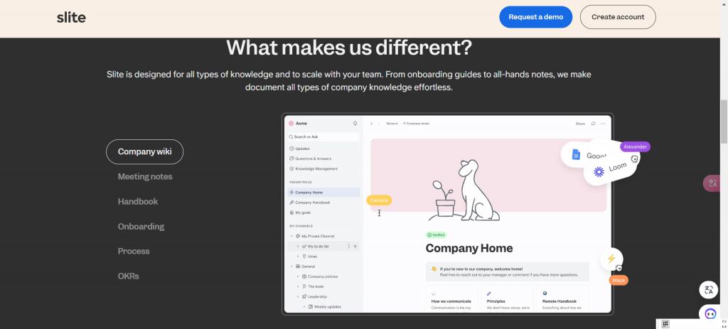 Slite offers an AI-powered knowledge base for quick access to company information through natural language queries.