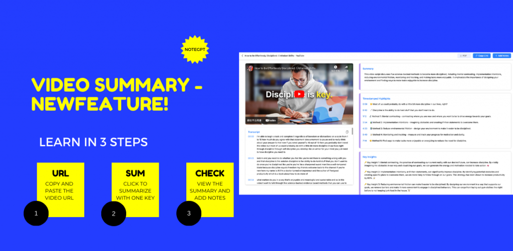 - Transcript and AI Summary: On the left side of the page, you'll find the transcript for a quick reference. On the right, marvel at the AI-generated summary by NoteGPT. Refresh until you are satisfied with the result.
